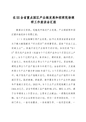 在全省重点园区产业链发展和招商现场调研工作座谈会汇报.docx