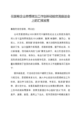 在国有企业思想政治工作创新经验交流座谈会上的汇报发言.docx