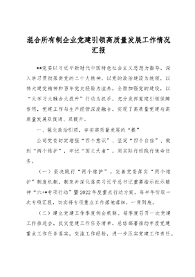 混合所有制企业党建引领高质量发展工作情况汇报.docx