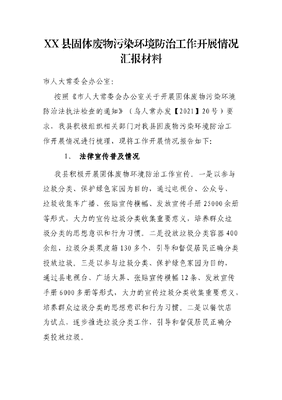 XX县固体废物污染环境防治工作开展情况汇报材料.docx
