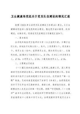 卫生健康局党组关于党员队伍建设的情况汇报.docx