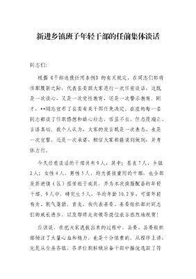 新进乡镇班子年轻干部的任前集体谈话.docx