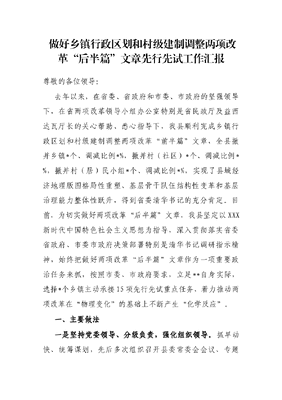做好乡镇行政区划和村级建制调整两项改革“后半篇”文章先行先试工作汇报.docx