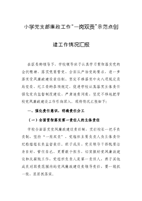 小学党支部廉政工作“一岗双责”示范点创建工作情况汇报.docx