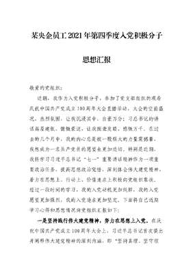 某央企员工2021年第四季度入党积极分子思想汇报.docx