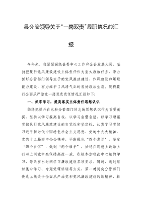 县分管领导关于“一岗双责”履职情况的汇报.docx