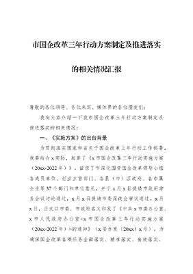 市国企改革三年行动方案制定及推进落实的相关情况汇报.docx