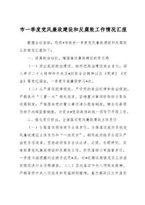 市一季度党风廉政建设和反腐败工作情况汇报.docx