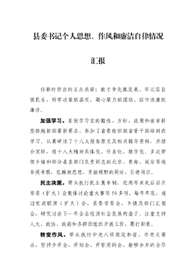 县委书记个人思想、作风和廉洁自律情况汇报.docx