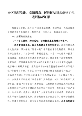 全区基层党建、意识形态、民族团结进步创建工作进展情况汇报.docx