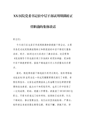 XX医院党委书记在中层干部试用期满转正任职前的集体谈话.docx