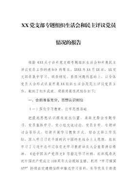 XX党支部专题组织生活会和民主评议党员情况的报告.docx