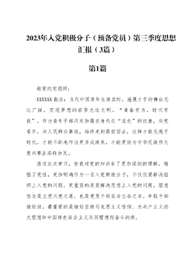 (3篇)2023年入党积极分子(预备党员)第三季度思想汇报.docx