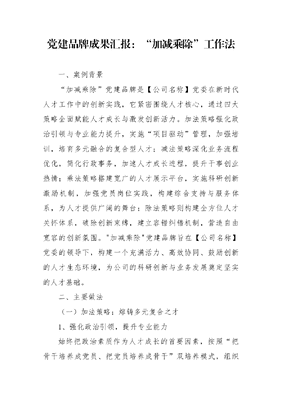 党建品牌成果汇报:创新“加减乘除”工作法,打造活力、高效、创新党建环境.docx
