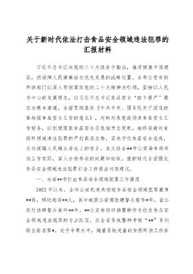 关于新时代依法打击食品安全领域违法犯罪的汇报材料.docx