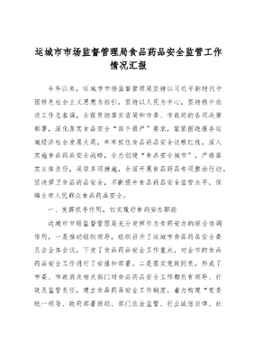 运城市市场监督管理局食品药品安全监管工作情况汇报.docx