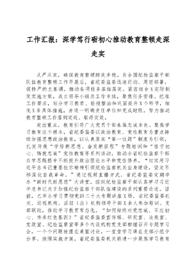 工作汇报:深学笃行砺初心推动教育整顿走深走实.docx