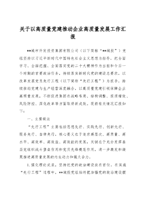 关于以高质量党建推动企业高质量发展工作汇报.docx
