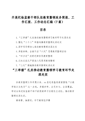(7篇)开展纪检监察干部队伍教育整顿政务简报、工作汇报、工作动态汇编.docx