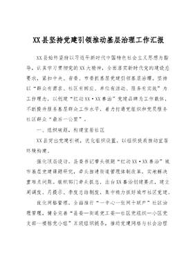 XX县坚持党建引领推动基层治理工作汇报.docx