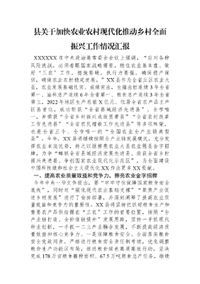 县关于加快农业农村现代化推动乡村全面振兴工作情况汇报.docx