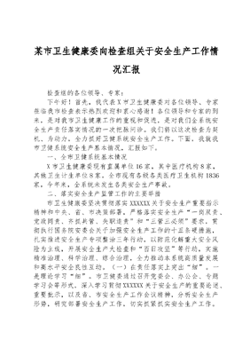 某市卫生健康委向检查组关于安全生产工作情况汇报.docx