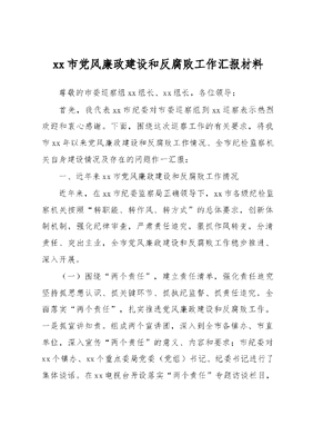 xx市党风廉政建设和反腐败工作汇报材料.docx