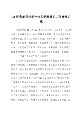XX区党建引领提升社区党群服务工作情况汇报.docx