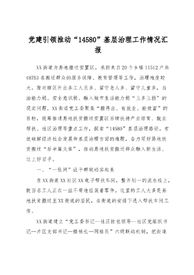 党建引领推动“14580”基层治理工作情况汇报.docx