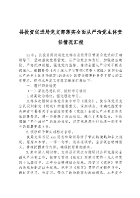 县投资促进局党支部落实全面从严治党主体责任情况汇报.docx