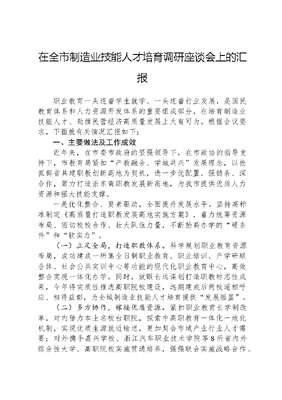 在全市制造业技能人才培育调研座谈会上的汇报.docx