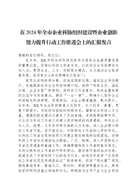 在2024年全市企业科协组织建设暨企业创新能力提升行动工作推进会上的汇报发言.docx