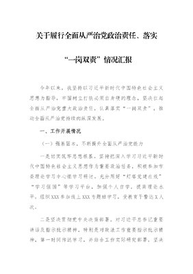 关于履行全面从严治党政治责任、落实“一岗双责”情况汇报.docx