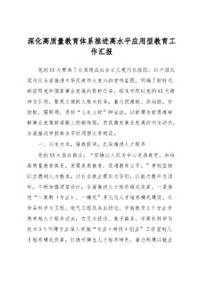 深化高质量教育体系推进高水平应用型教育工作汇报.docx