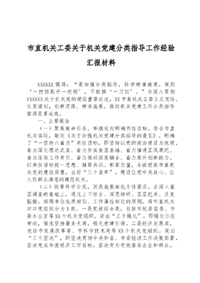 市直机关工委关于机关党建分类指导工作经验汇报材料.docx