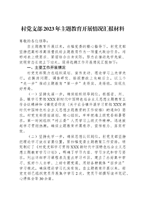 村党支部2023年主题教育开展情况汇报材料.docx