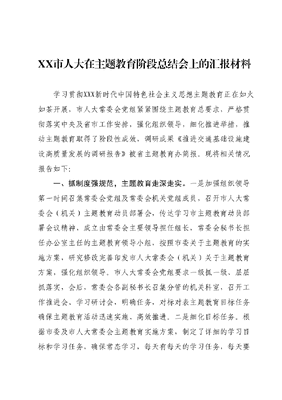 XX市人大在主题教育阶段总结会上的汇报材料.docx