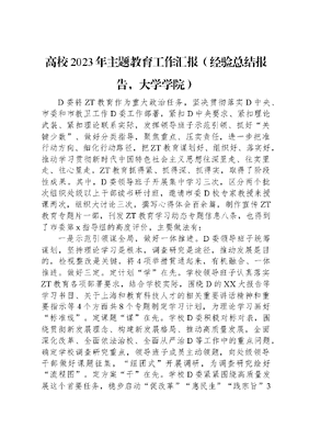 高校2023年主题教育工作汇报(经验总结报告,大学学院).docx