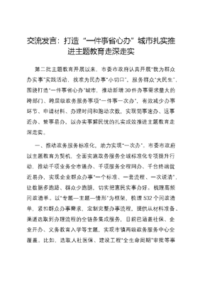 交流发言:打造“一件事省心办”城市 扎实推进主题教育走深走实.docx