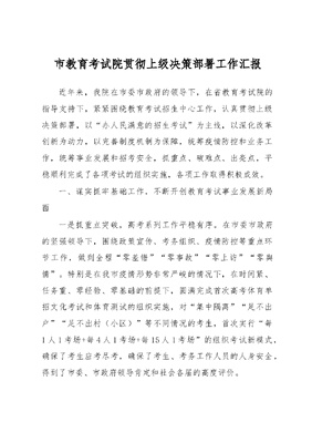 市教育考试院贯彻上级决策部署工作汇报.docx