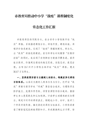 市教育局推动中小学“战疫”课程制度化常态化工作汇报.docx