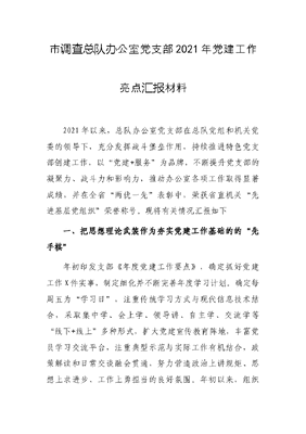 市调查总队办公室党支部2021年党建工作亮点汇报材料.docx