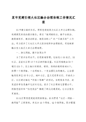 某市党建引领大社区融合治理体制工作情况汇报.docx
