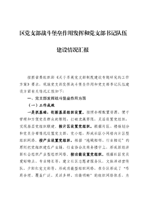 区党支部战斗堡垒作用发挥和党支部书记队伍建设情况汇报.docx
