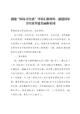 创建“国家卫生镇”评审汇报材料:创建国家卫生镇共建美丽新家园.docx