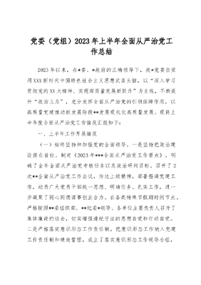 党委(党组)2023年上半年全面从严治党工作总结.docx