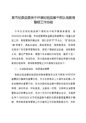 某市纪委监委关于开展纪检监察干部队伍教育整顿工作总结.docx