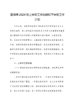 医保局2024年上半年工作总结和下半年工作计划.docx