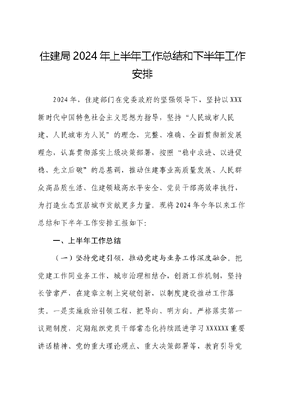 住建局2024年上半年工作总结和下半年工作安排.docx
