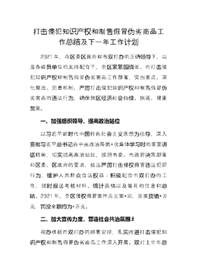 打击侵犯知识产权和制售假冒伪劣商品工作总结及下一年工作计划.docx